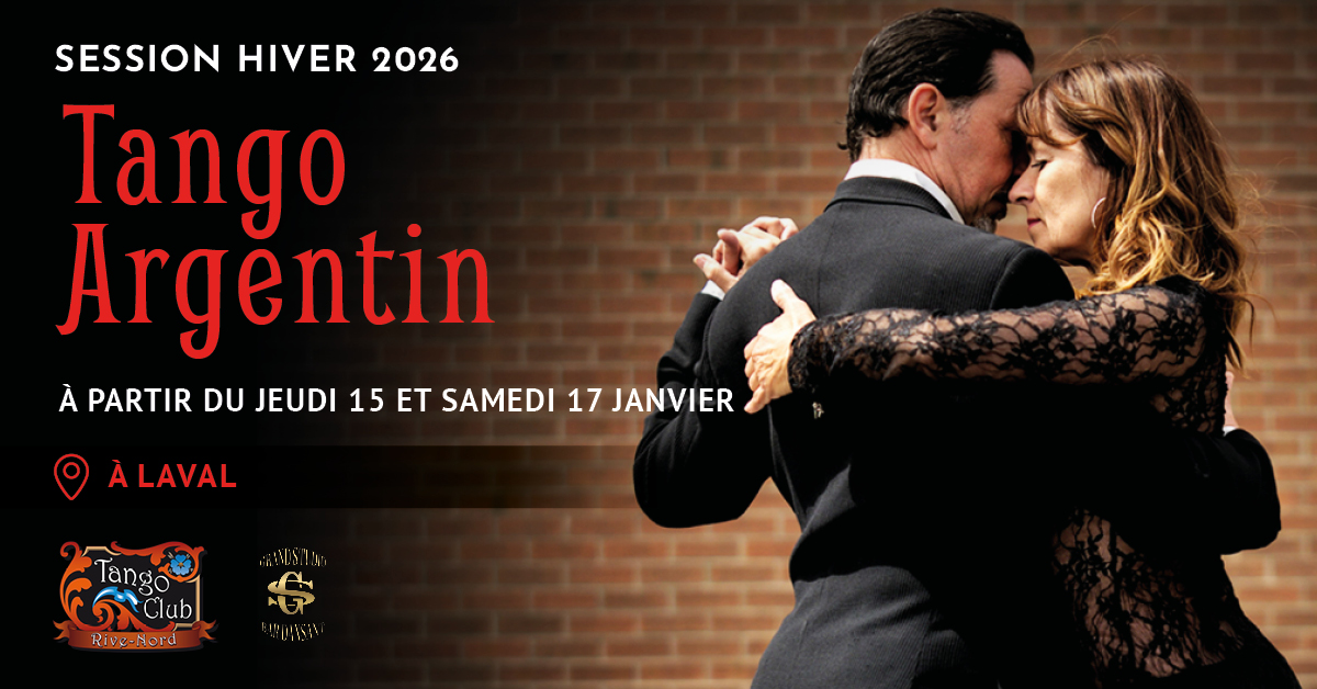 L’équipe de Tango Club Rive-Nord vous accompagne dans l’apprentissage du Tango Argentin à travers des cours de groupe dynamiques offerts selon une progression de 8 niveaux. Au fil des sessions, vous pourrez ainsi maîtriser et perfectionner les bases essentielles du Tango Argentin et évoluer à votre rythme. Vous n’avez pas de partenaire ? Avisez-nous. Nous proposons aussi des cours privés pour parfaire votre connaissance du Tango Argentin.
